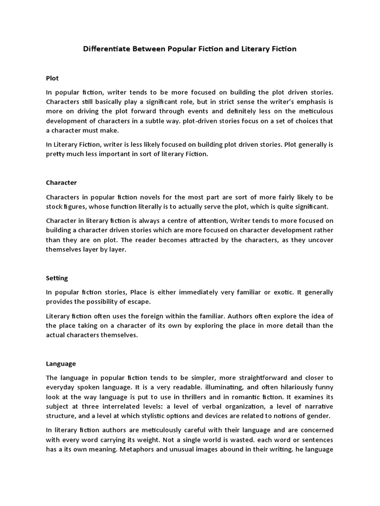 Popular Fiction Vs Literary Fiction | PDF | Plot (Narrative) | Writers, Format file: JPG, scribd.com.