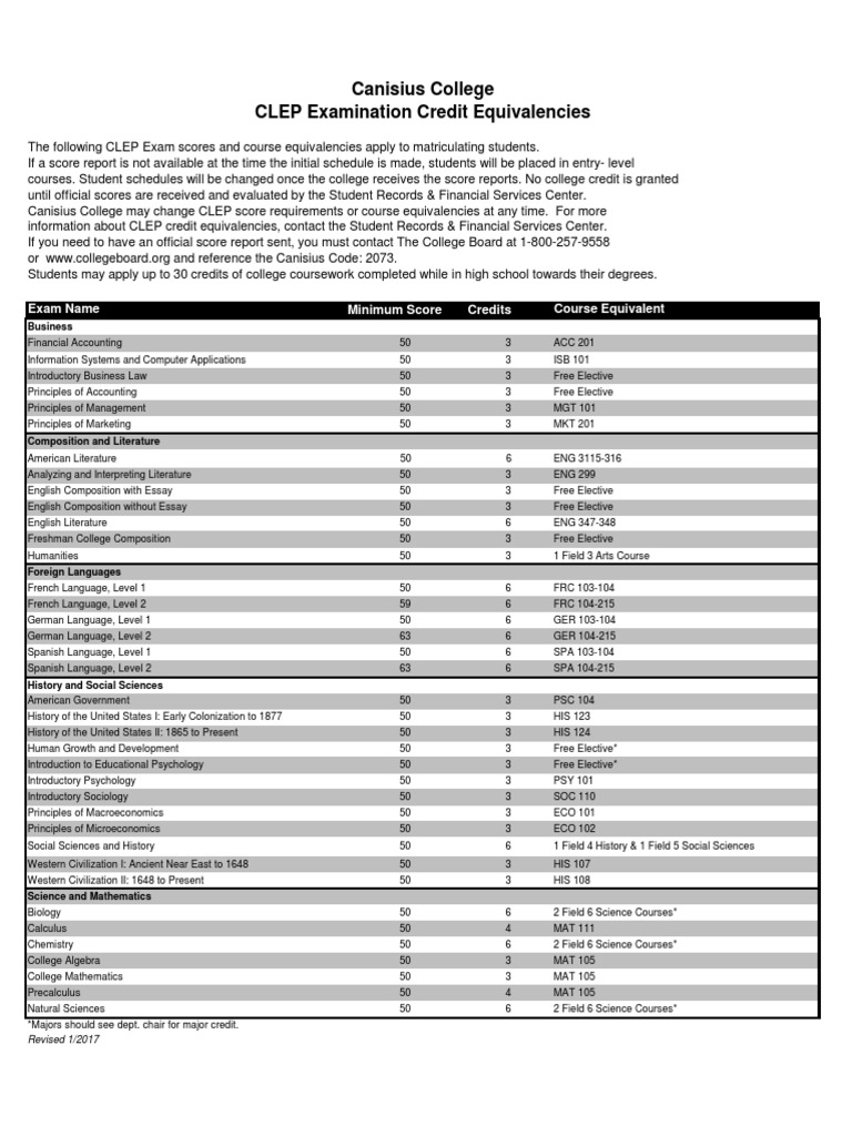 CLEP Chart For Students | PDF | College Level Examination Program ..., Format file: JPG, scribd.com.